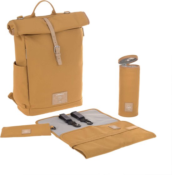 LÄNSSIG Luiertas Rolltop Backpack incl. verschoningsmatje - curry