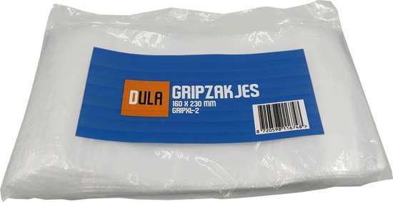 ✔ DULA - Gripzakje - 160 x 230 mm (A5 formaat) - Transparant - 200 stuks - Hersluitbare verpakking zakjes is zelden zó goedkoop! Wees er snel bij!