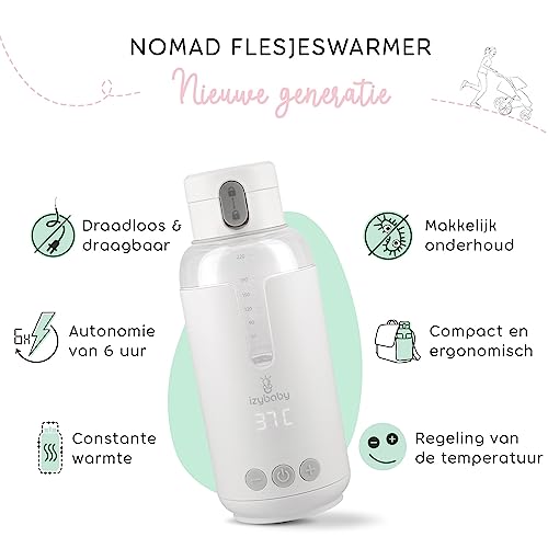 izybaby Nomad, draagbare flessenwarmer/auto, instelbare temperatuur, USB-opladen, melkverwarmer