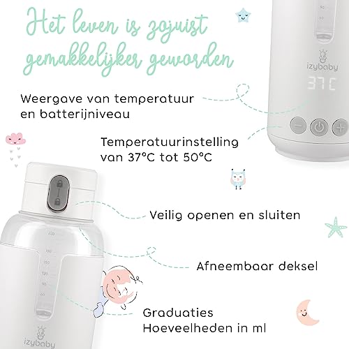 izybaby Nomad, draagbare flessenwarmer/auto, instelbare temperatuur, USB-opladen, melkverwarmer