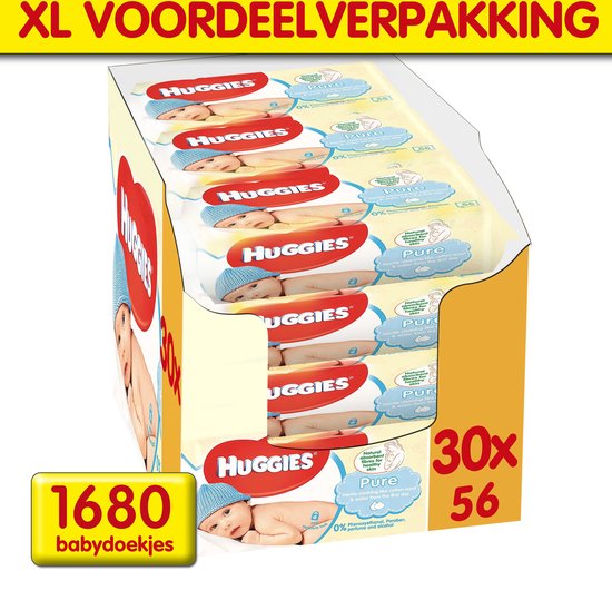 Huggies - Pure - Billendoekjes - 3360 babydoekjes - 60 x 56Huggies babydoekjes Pure bevat 99% water!